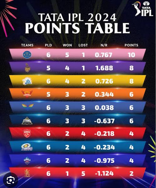 Points TableThe Top 4 Team's will play the semi Final and By winning the semi final, the final two team's will play the IPL 2024 Final in Chennai Chepauk Stadium.